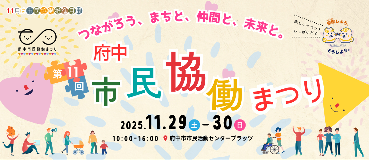 - 【地域イベント情報】まちと、仲間と、未来とつながる2日間 「第11回府中市民協働まつり」に出展します!